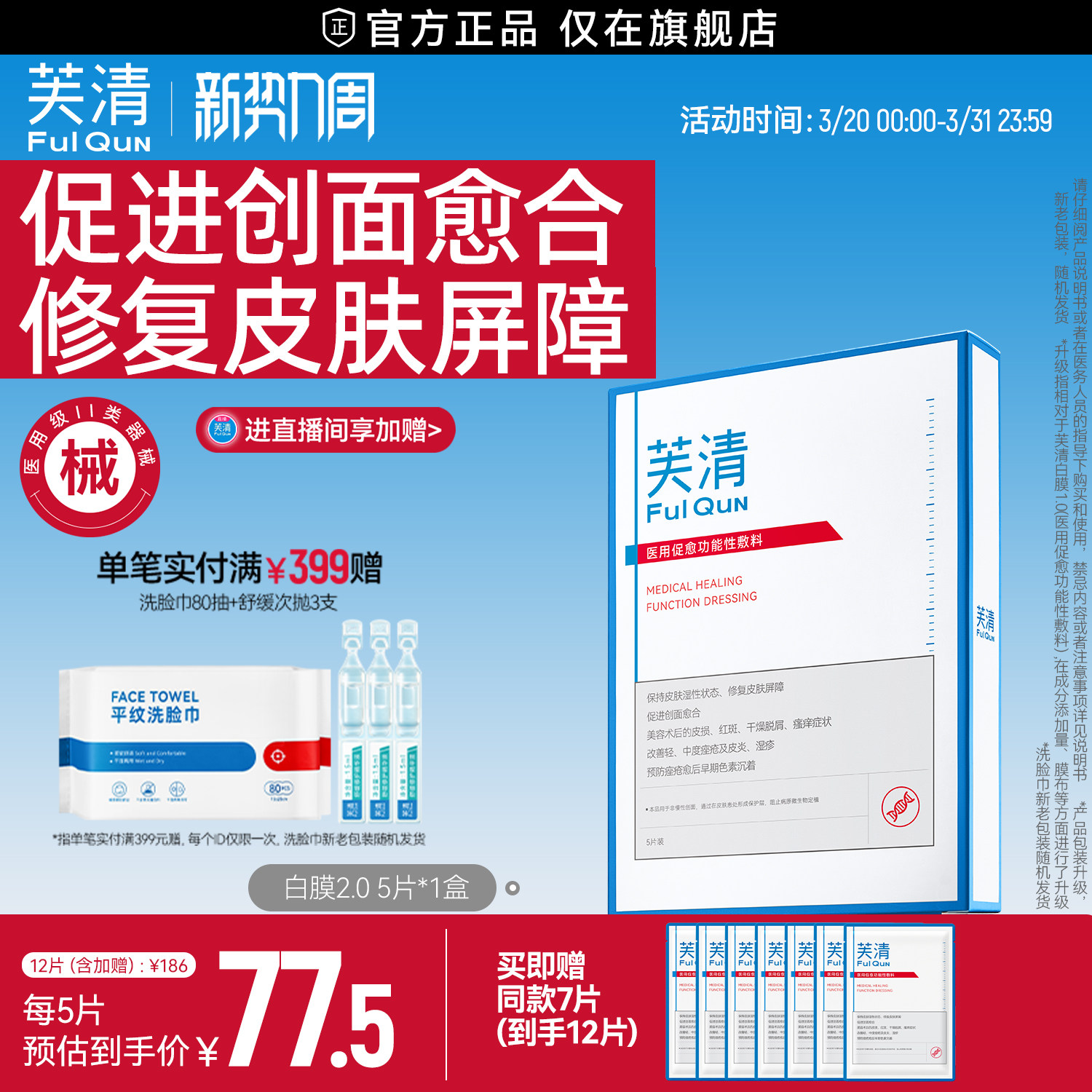 【专享】芙清白膜械号医用敷料痘痘医美术后修复改善痤疮非面膜