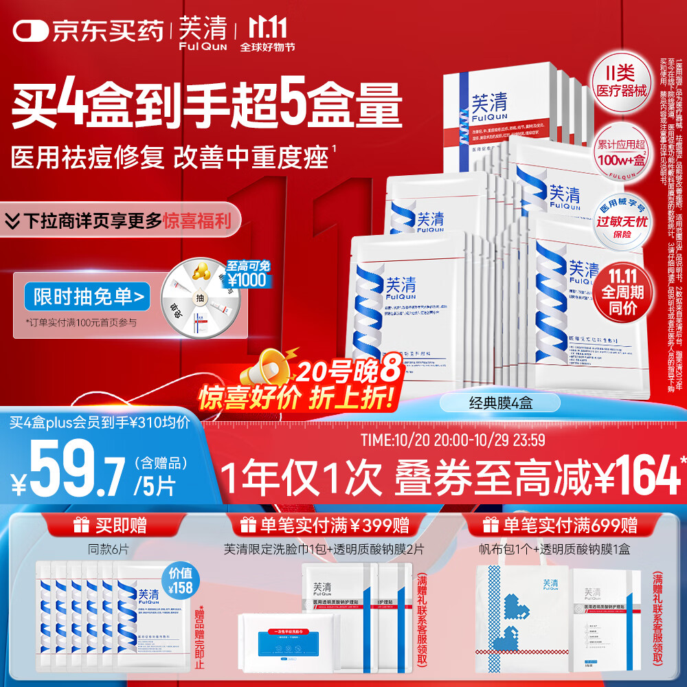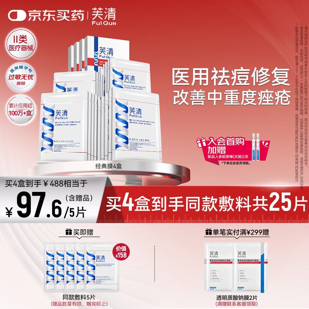 芙清医用促愈敷料面膜型4盒 经典膜械字号凉茶祛痘改善痤疮皮炎