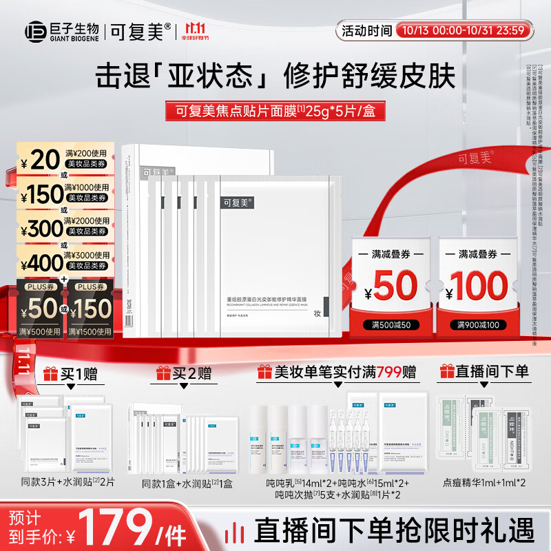 可复美焦点面膜可复美重组胶原蛋白光奕御能修护精华面膜5片紧致保湿