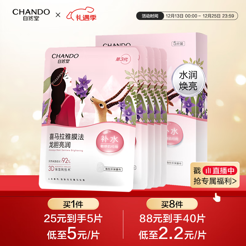 自然堂喜马拉雅膜法龙胆亮润面膜26ml*5片 焕亮透光敏肌可用