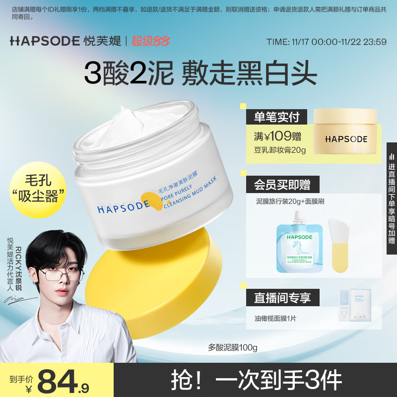 悦芙媞多酸泥膜油皮深度清洁去黑头涂抹面膜送女友 【RICKY沈泉锐同款】2.0正装100g