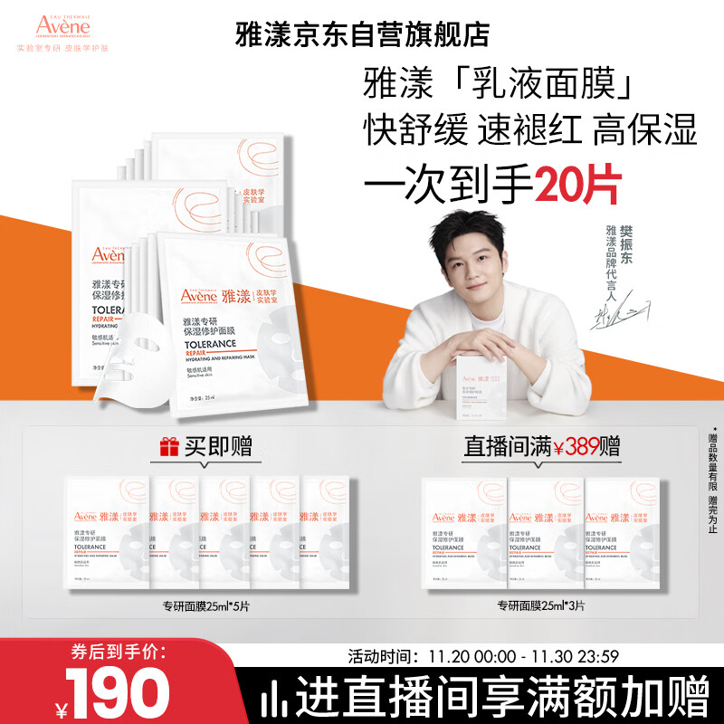 雅漾(Avene)专研保湿修护面膜15片 舒缓修护泛红高保湿贴片乳液面膜敏肌礼物