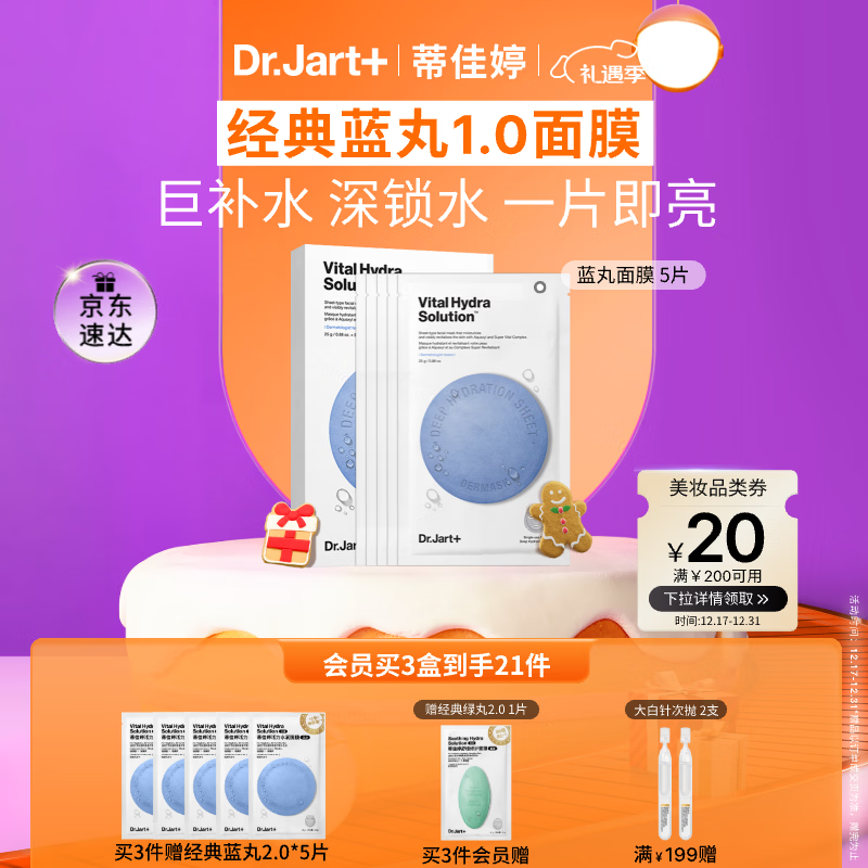 蒂佳婷(Dr.Jart)【蓝丸1.0】补水蓝丸面膜5片晒后补水修护焕亮保湿玻尿酸圣诞礼物