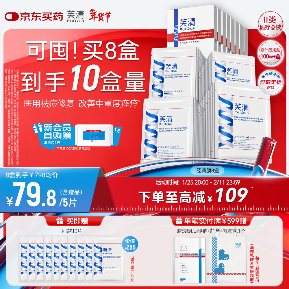 芙清医用敷料面膜型8盒40片 经典膜械字号祛痘改善痤疮皮炎湿疹