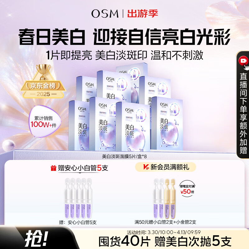 欧诗漫(OSM)珍珠美白淡斑面膜8盒补水保湿改善暗沉提亮护肤品生日礼物