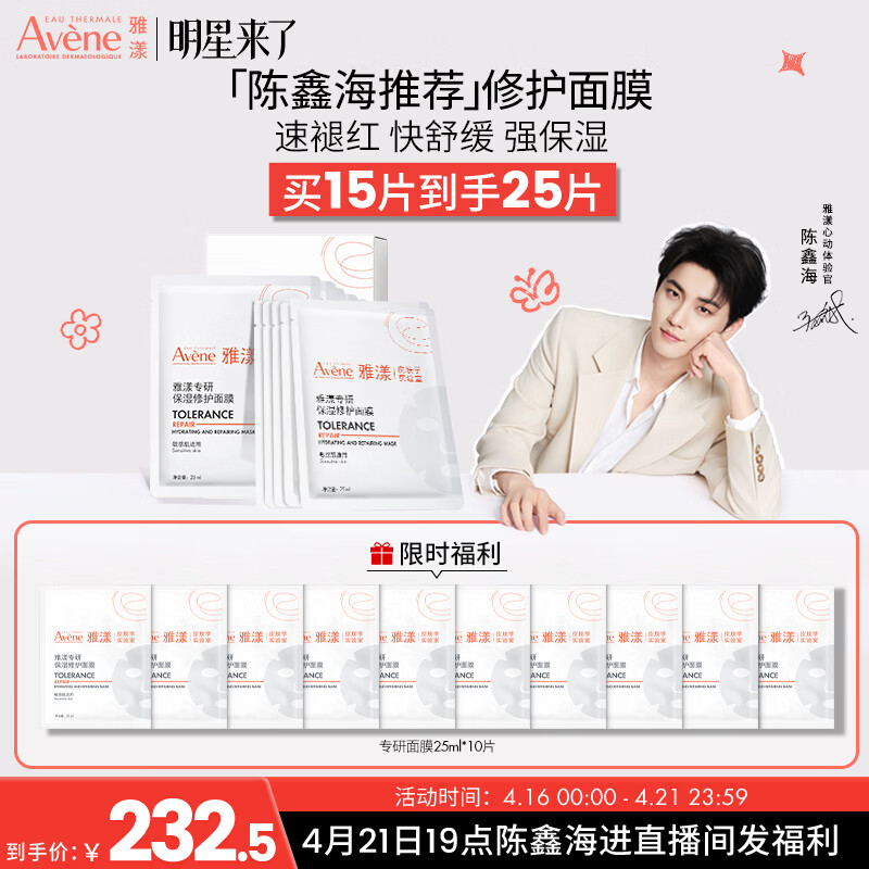 雅漾(Avene)【陈鑫海推荐】专研保湿修护面膜15片 舒缓修护泛红保湿敏肌礼物
