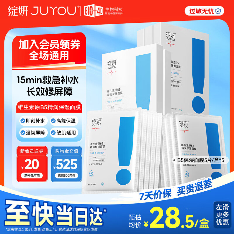 绽妍补水面膜精华贴 日常保湿舒缓滋润肌肤 皮肤屏障修护熬夜女护肤品 【真的便宜】B5补水面膜5盒