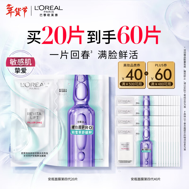 欧莱雅安瓶面膜4.0 20片补水保湿修护舒缓护肤品新年礼物