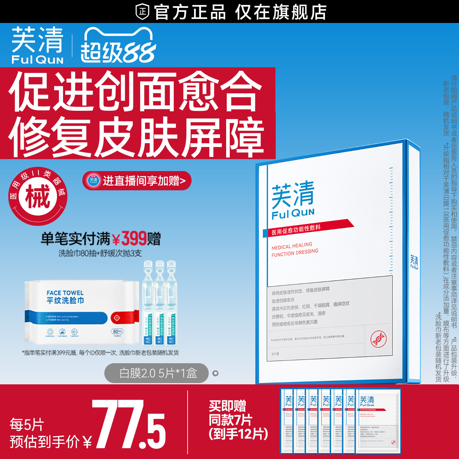 【专享】芙清白膜械号医用敷料痘痘医美术后修复改善痤疮非面膜