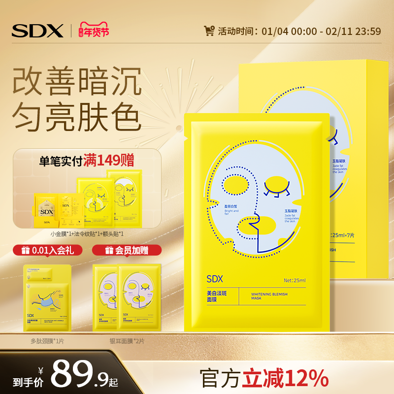 SDX美白淡斑面膜去黄提亮肤色烟酰胺改善暗沉补水保湿男女用正品