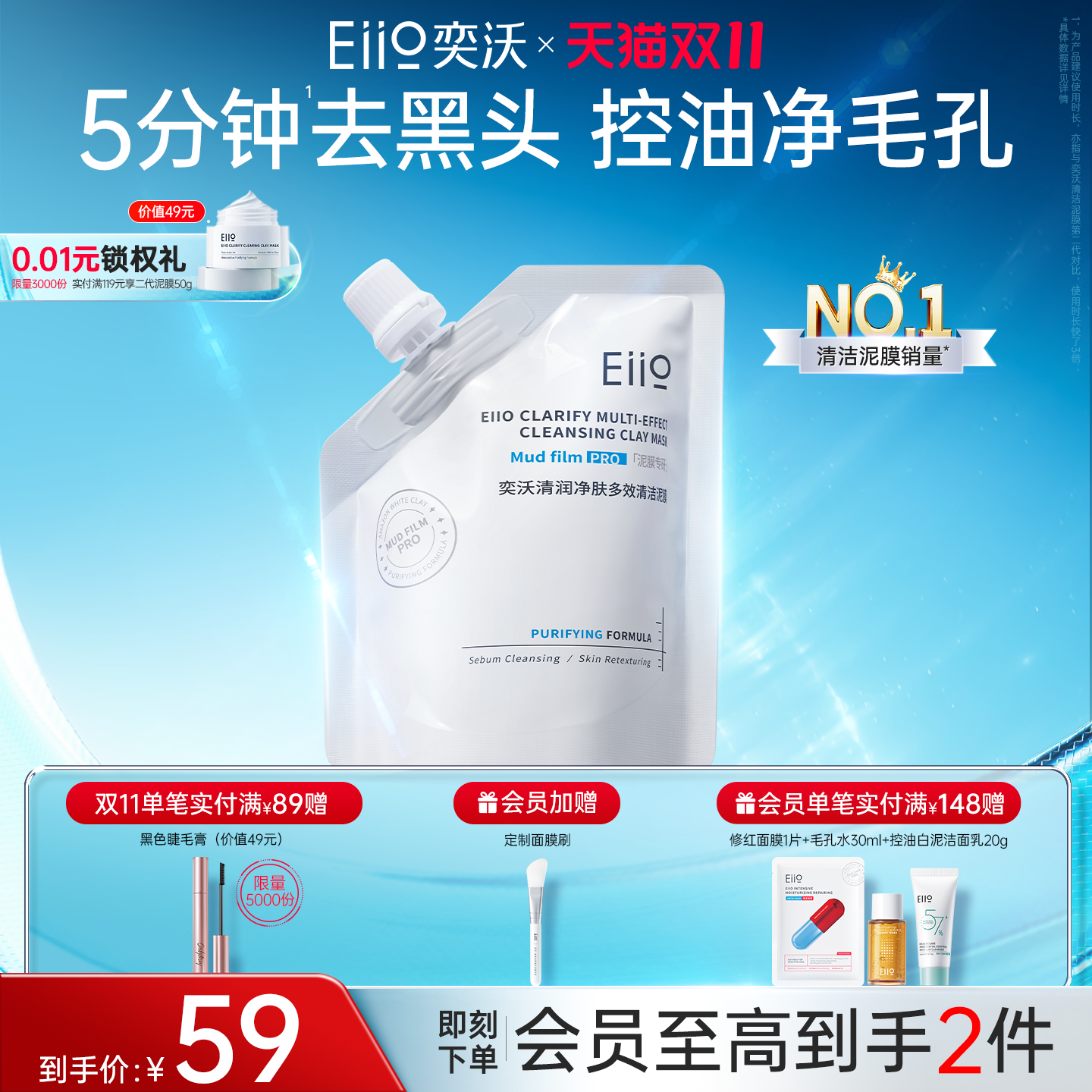 【双11抢先购】eiio清洁泥膜补充装去黑头清洁毛孔白泥涂抹面膜