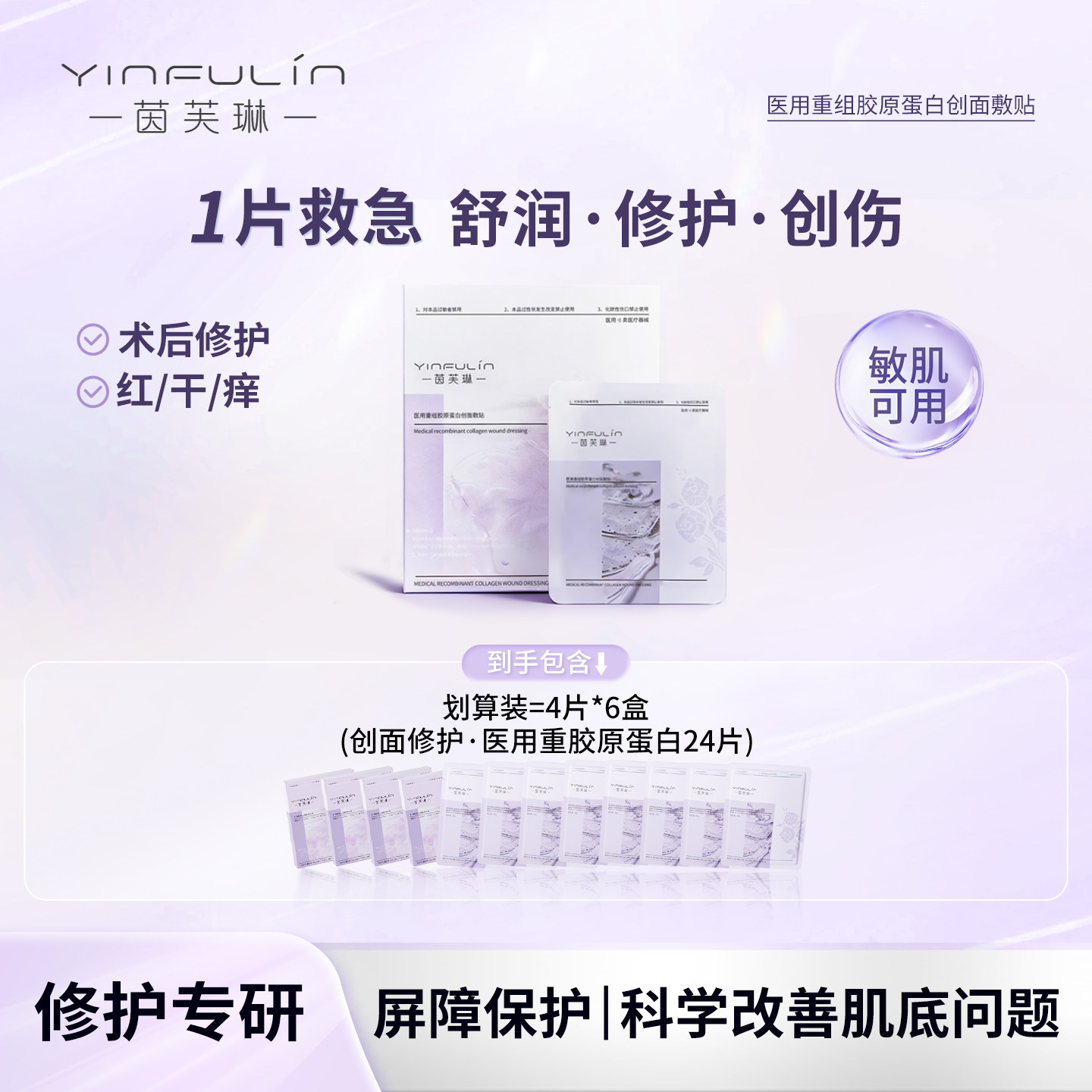茵芙琳医用胶原蛋白敷料舒缓修护皮肤屏障术后冷敷贴械字号非面膜