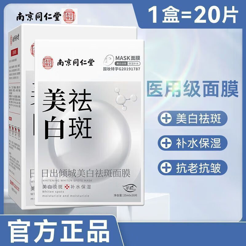 同仁堂面膜美白补水淡斑提亮清洁肤色睡眠祛斑抗氧化紧致抗皱护肤品男女 美白补水20片