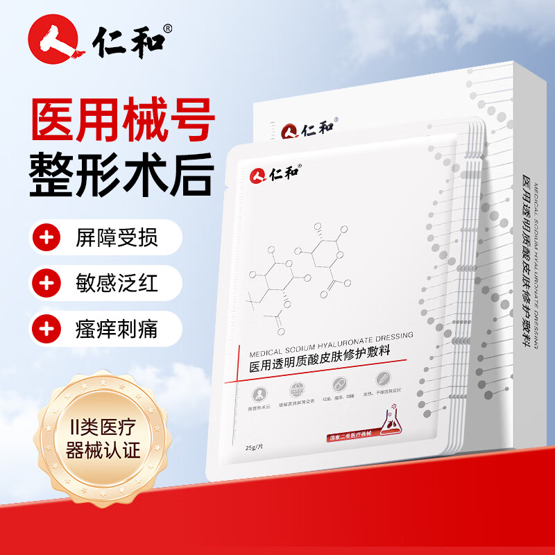 仁和医用透明质酸修护敷贴水光针医美术后光子嫩肤医用械字号冷敷面膜 【日常囤货】4盒/共20片