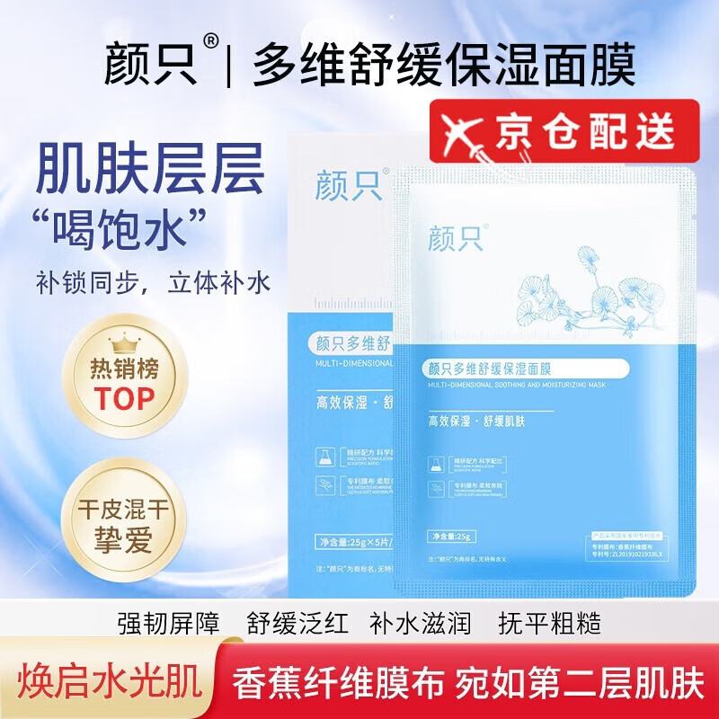 颜只【旗舰正品】多维舒缓保湿面膜益生菌积雪草修护紧致补水焕亮男女 一盒5片+送1片【到手6片】