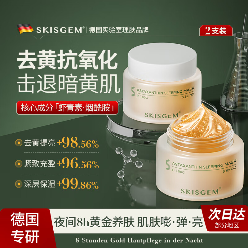 SKISGEM德国进口虾青素睡眠面膜免洗补水保湿去黄提亮肤色改善暗沉男女士 200g【美白紧致淡纹 全脸焕亮】