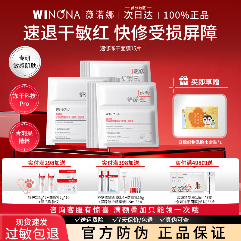 薇诺娜舒缓速修冻干面膜补水保湿敏感肌泛红屏障贴片面膜正品新年礼物 【舒缓速修】冻干面膜15片