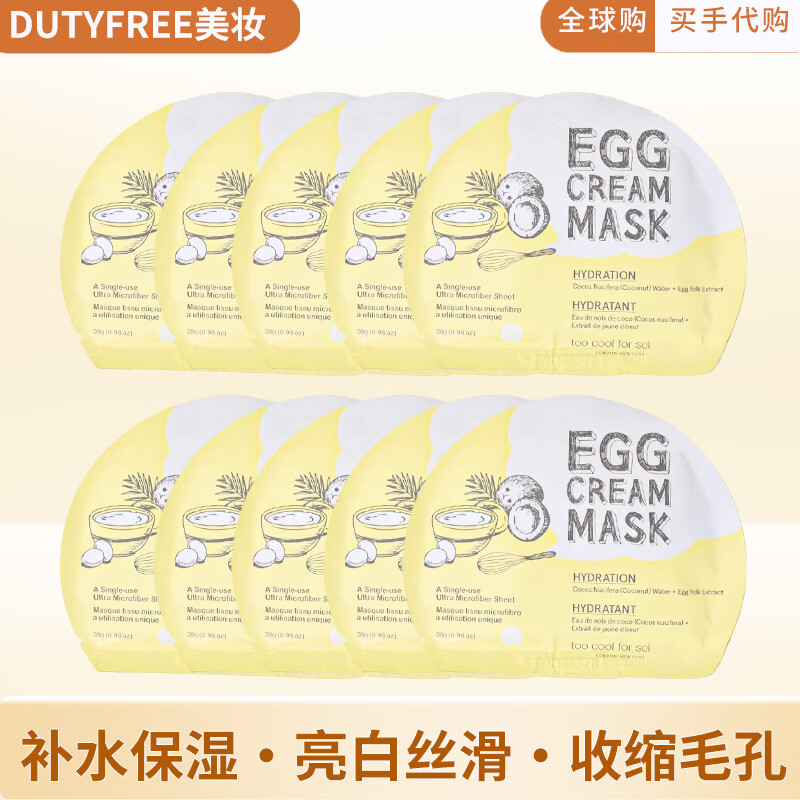 too cool for school原装进口韩国鸡蛋面膜补水保湿面膜涂酷鸡蛋面膜收缩毛孔紧致egg 黄色10片(滋养补水)