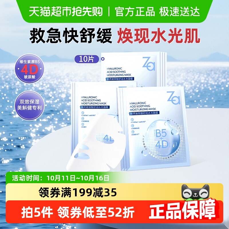Za/姬芮B5维生素原B5面膜4D玻尿酸补水保湿褪红舒缓舒润水光面膜