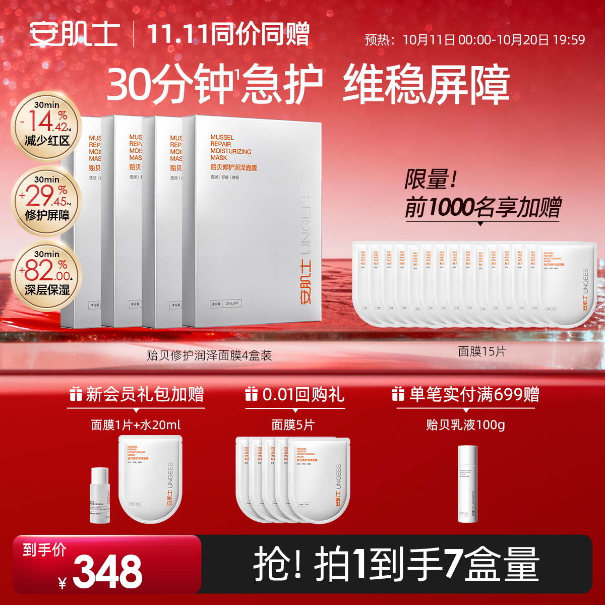 【双11抢先购】安肌士贻贝面膜修护屏障保湿补水舒缓温和敏感肌