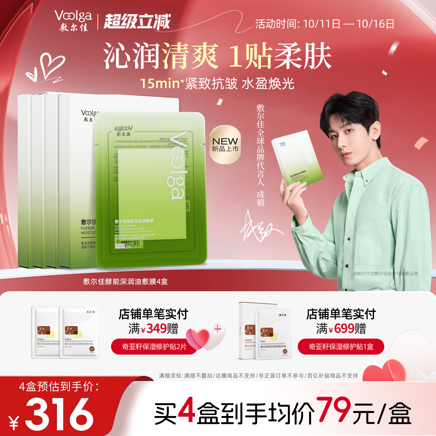 【重磅新品】敷尔佳酵能深润油敷膜面膜舒缓修护补水保湿精华4盒