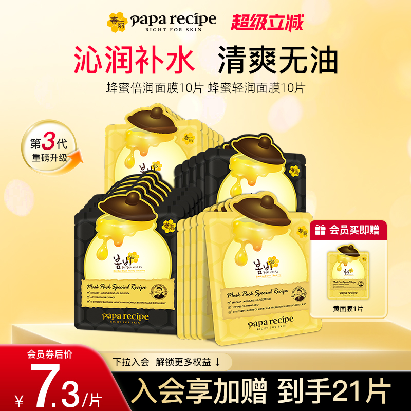 【控油舒润组合】韩国黄黑春雨蜂蜜面膜组合20片控油补水保湿舒缓