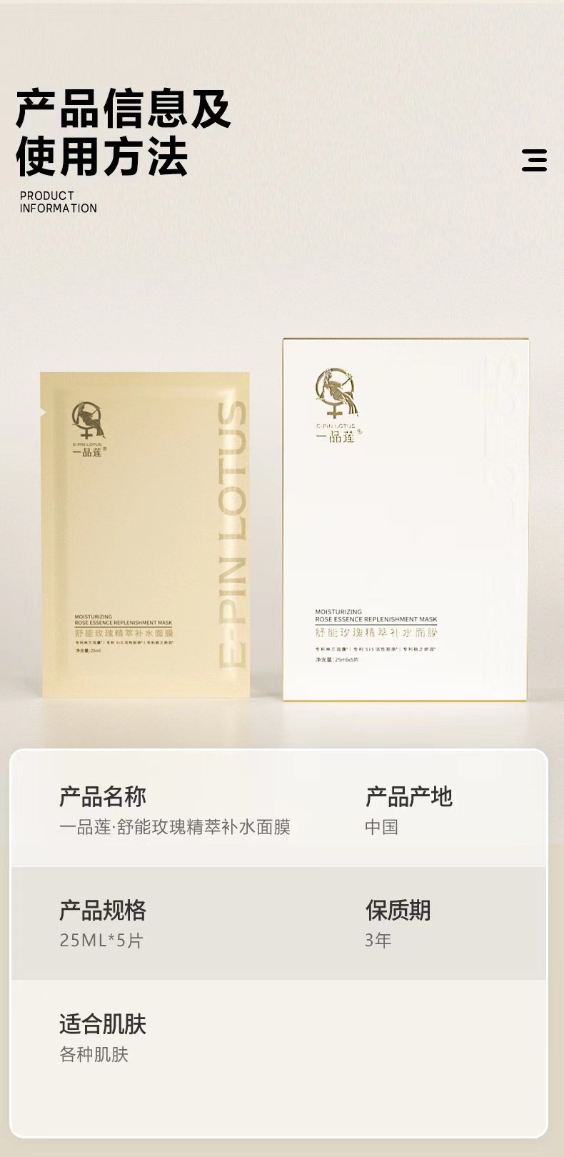 翌芙莱一品莲舒能玫瑰精粹补水面膜深层补水面膜滋润官方旗舰店
