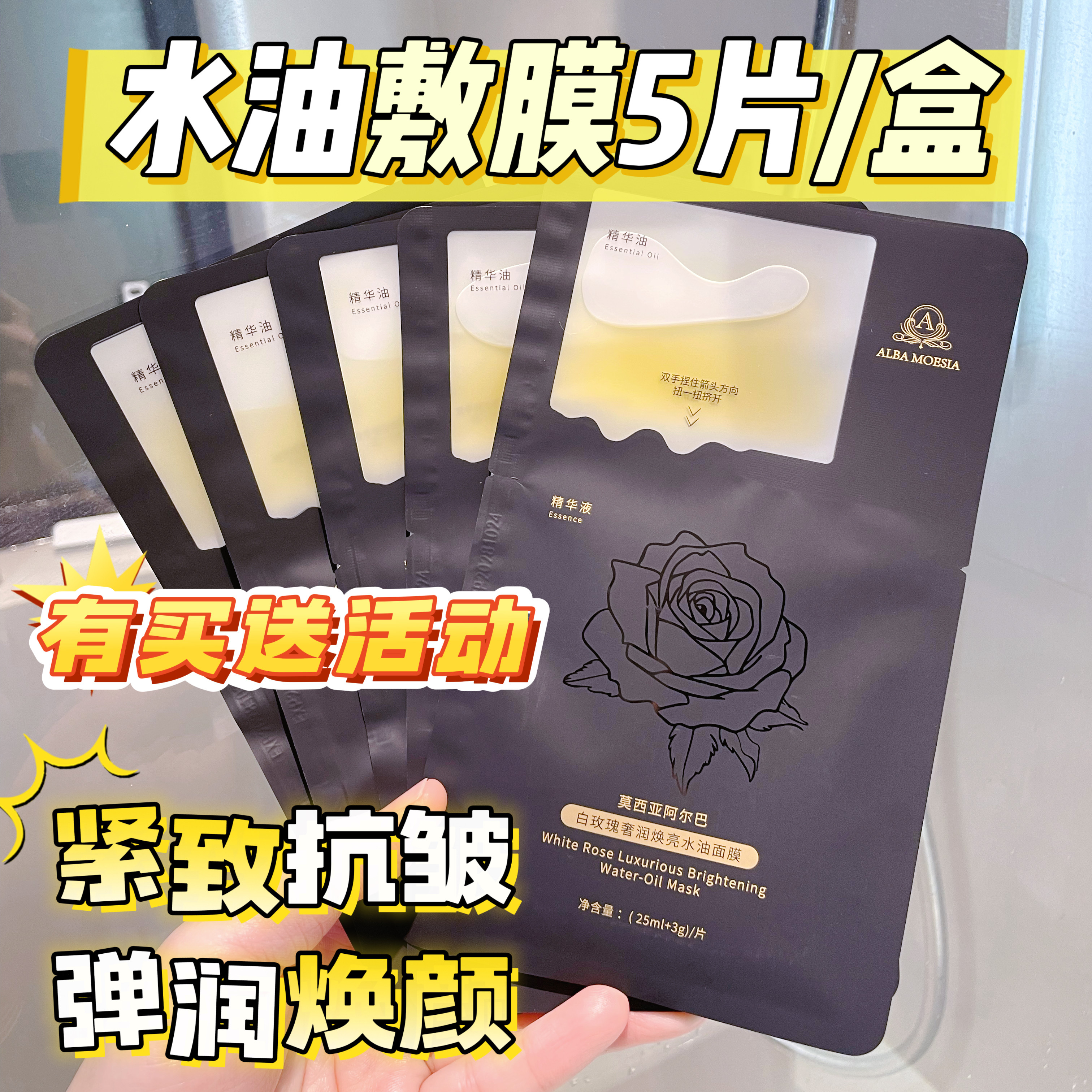 玫瑰奢润焕亮水油面膜5片/盒莫西亚阿尔巴以油养肤天然精油成分
