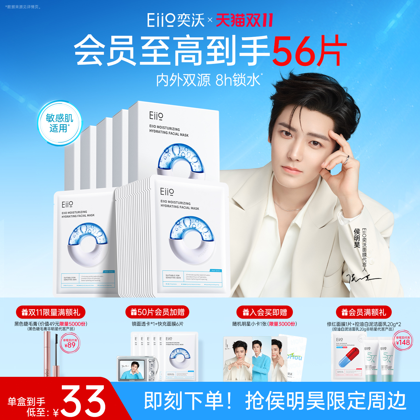 【侯明昊同款】eiio快充面膜保湿水润细腻护肤补水面膜官方正品
