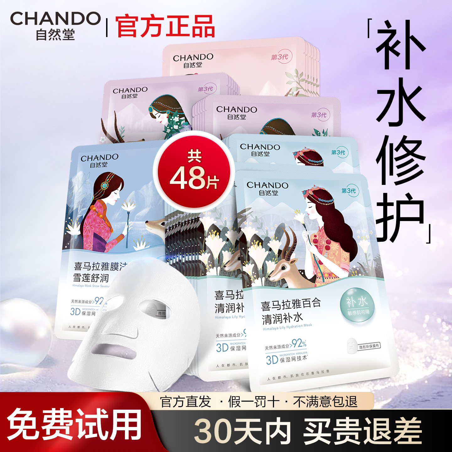 自然堂喜马拉雅面膜女补水保湿贴片舒缓提亮细致毛孔学生植物面膜