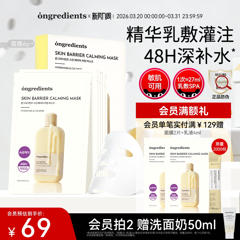 ongredients温丽慈面膜积雪草奶皮面膜保湿舒缓敏感肌官方正品
