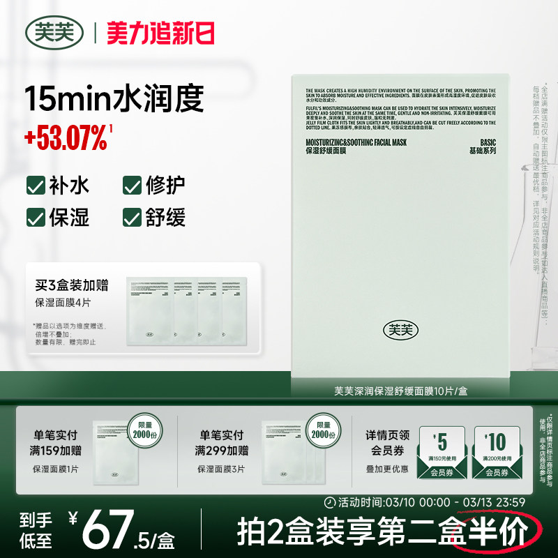 芙芙补水面膜保湿舒缓B5泛醇敏感肌熬夜肌肤修护褪红官方正品fufu