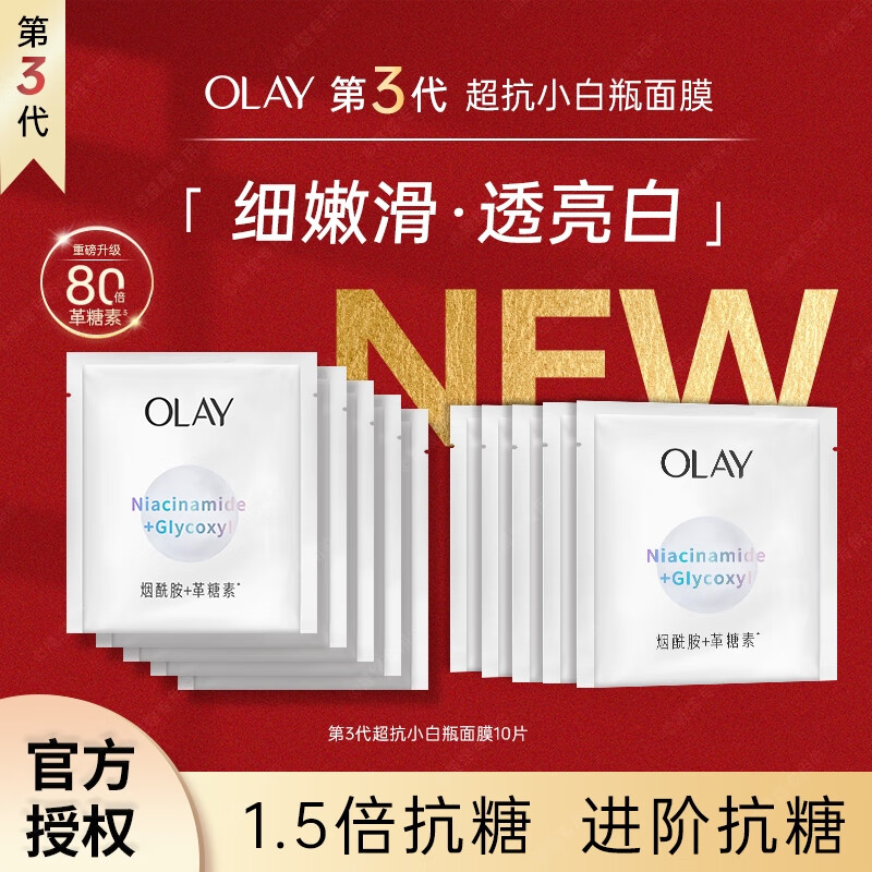 玉兰油(OLAY)3.0抗糖小白瓶水感透白面膜祛斑美白提亮紧致老婆送女友生日礼物 【店长推荐】3.0超抗面膜10片