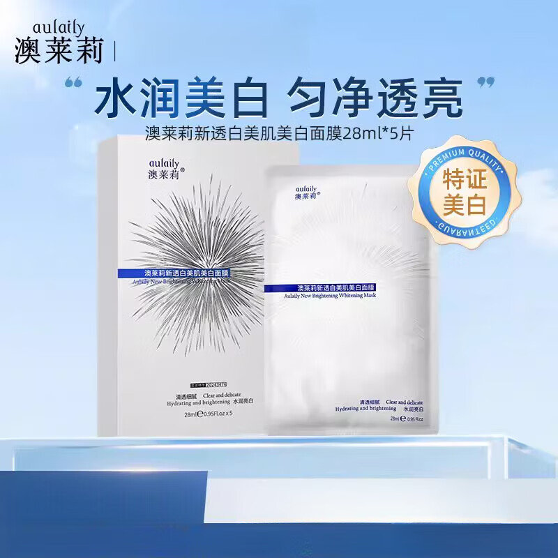 澳莱莉面膜新透白美肌美白烟酰胺保湿气暗沉淡痘印增白 1盒 共5片 尝鲜装