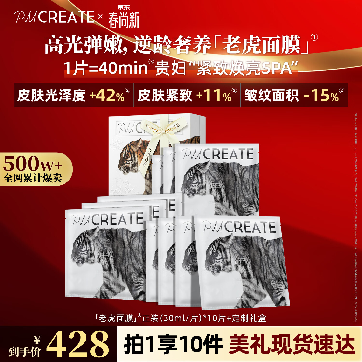 云朵罗兰PMCREATE新颜紧致抗皱水光精华面膜10片老虎面膜修护舒缓生日礼物