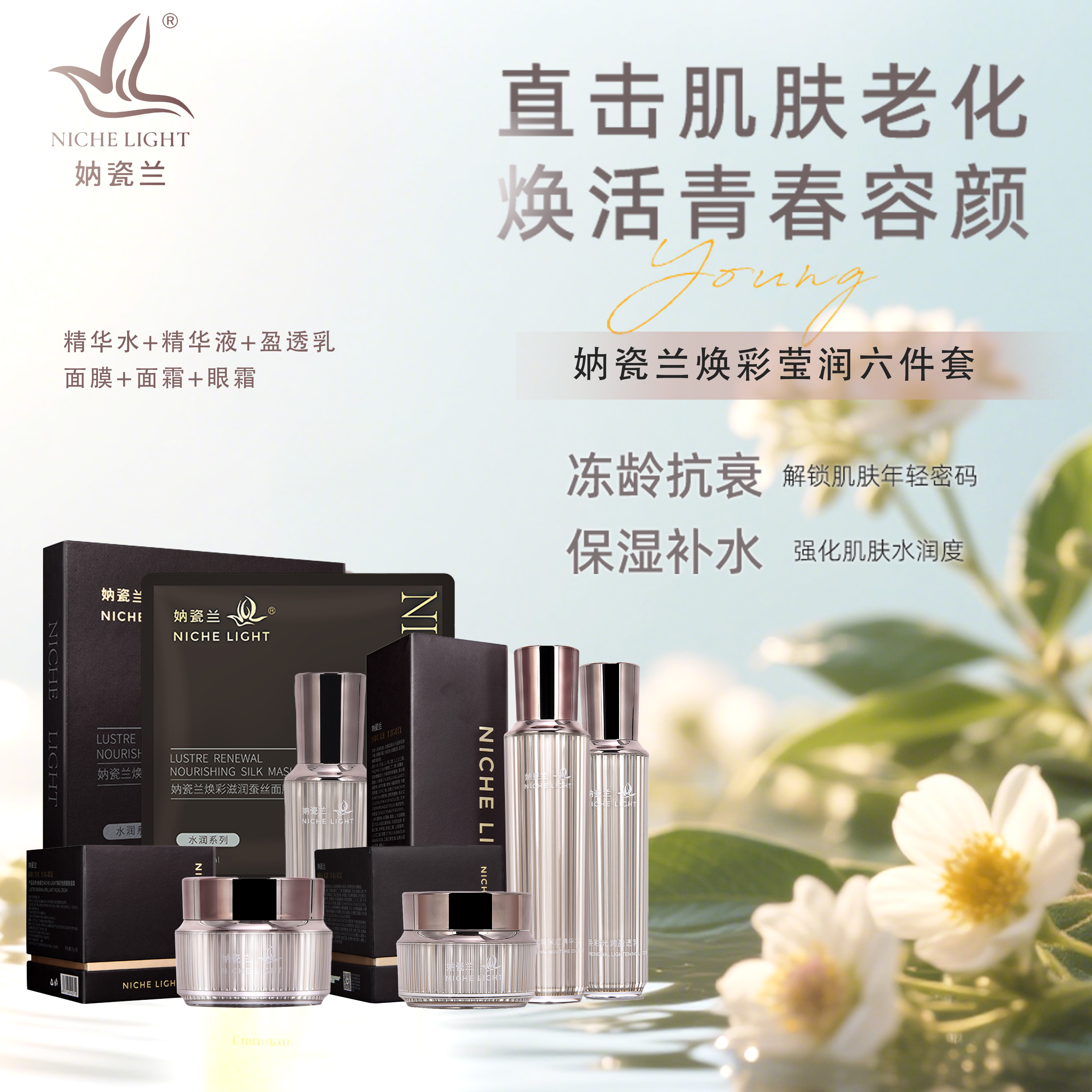 妠瓷兰 NICHE LIGHT焕彩莹润护肤品套装礼盒精华眼霜面膜精华液水乳面霜 礼物