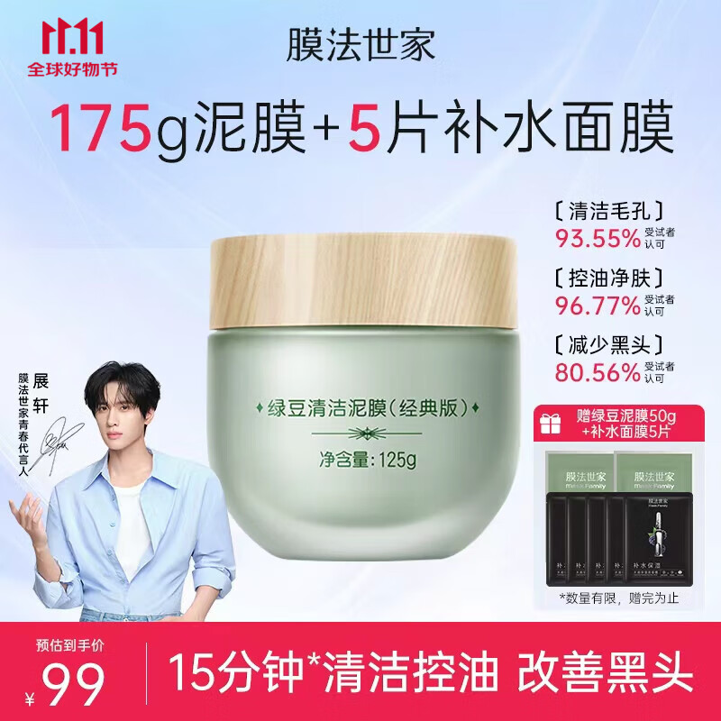 膜法世家绿豆清洁泥膜控油去黑头清洁毛孔涂抹式绿豆泥膜魔法世面膜 【清洁控油】绿豆泥膜经典版