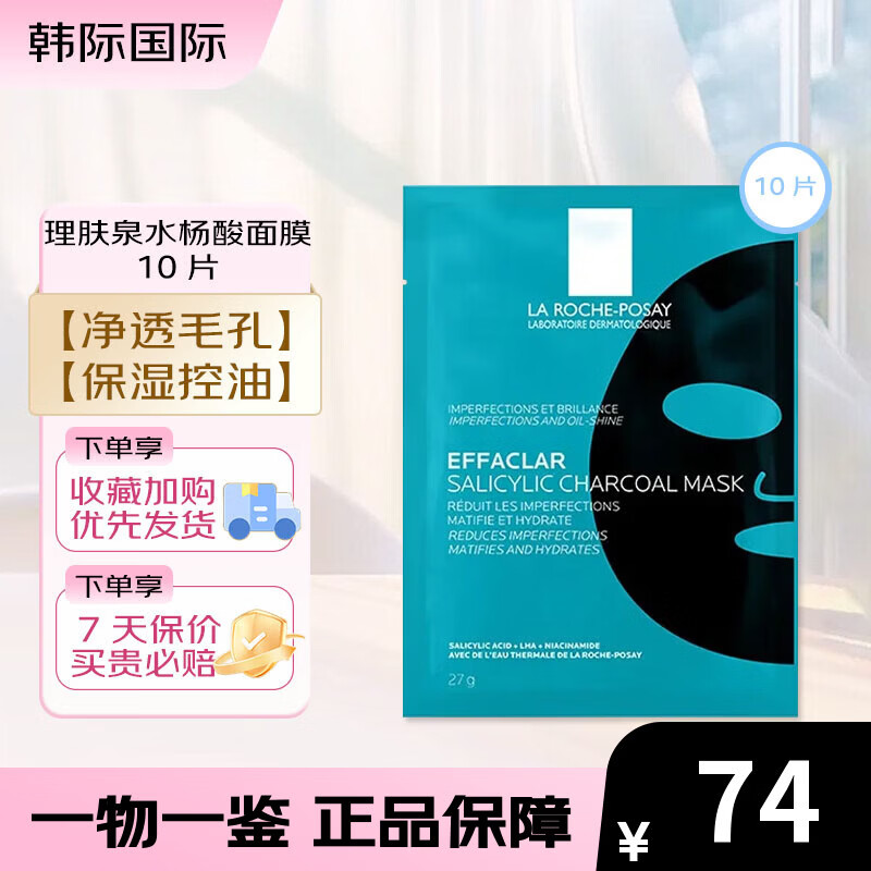 理肤泉水杨酸黑膜清痘净肤面膜5片 保湿控油净透毛孔面膜 【控油净毛孔】水杨酸黑膜 10片