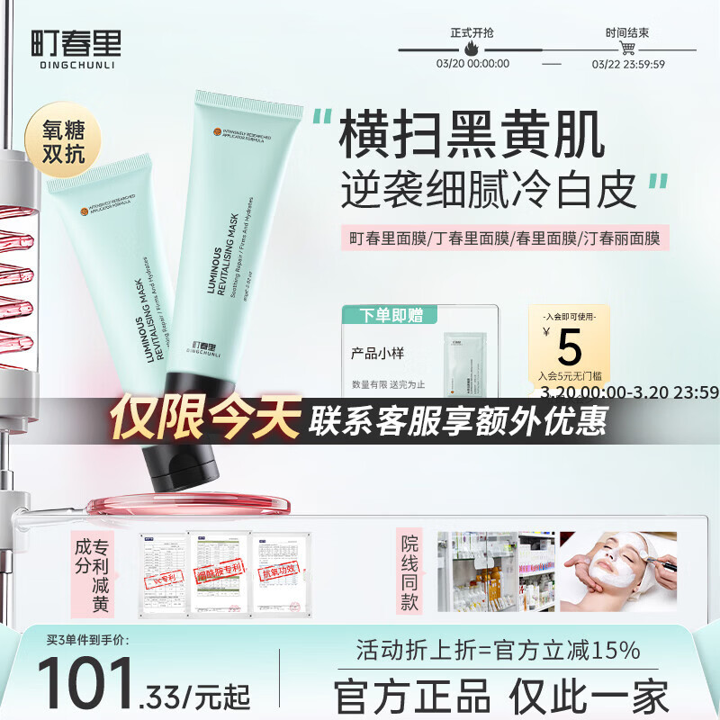 町春里面膜莹白丁春里面膜减黄提亮汀春丽面膜收缩毛孔春里面膜焕亮 一支体验装
