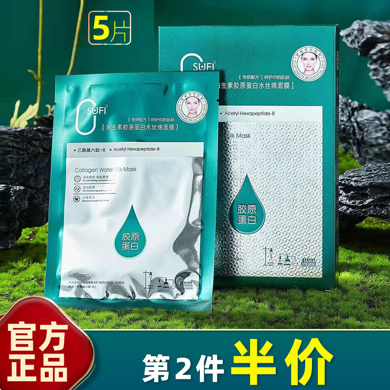欧束菲 正品 5片 海生素胶原蛋白水丝绵面膜 保湿滋润收缩毛孔