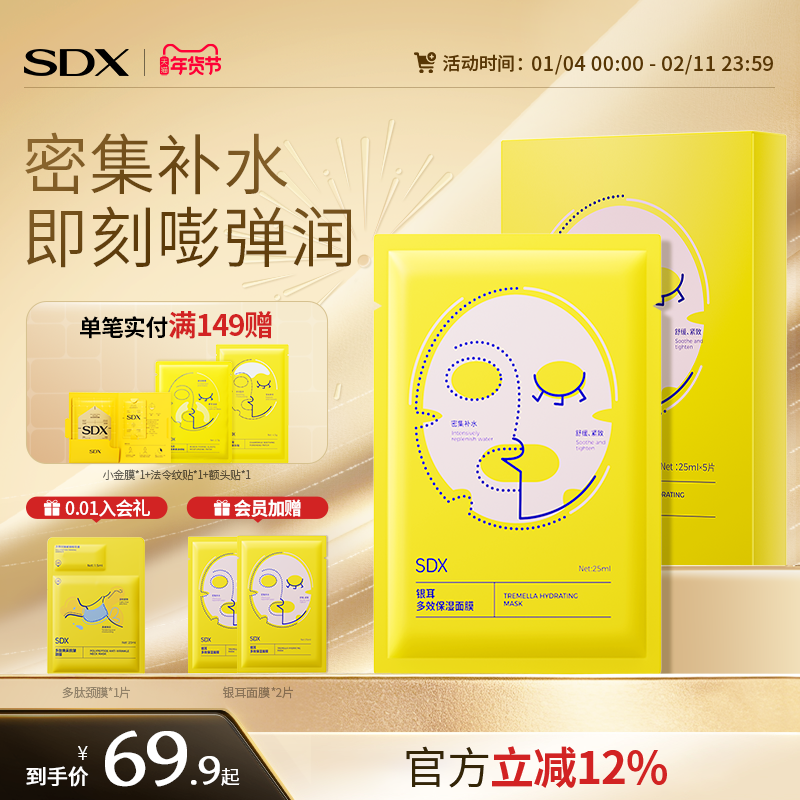 sdx银耳多效保湿面膜补水面膜去黄气暗沉正品官方旗舰店