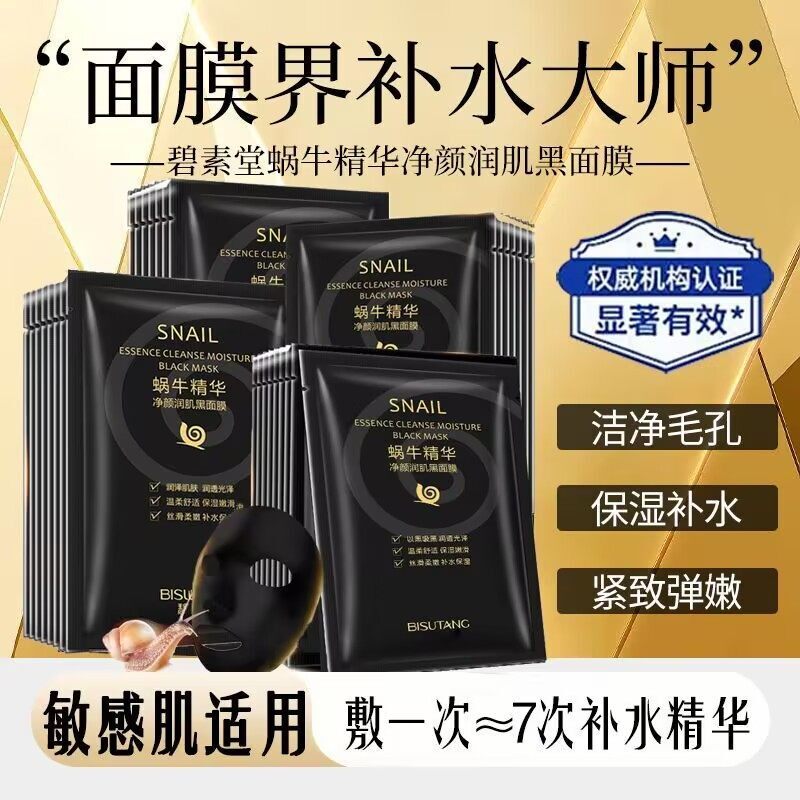 正品碧素堂蜗牛精华润肌黑麪膜保湿保湿以黑吸黑贴片面膜