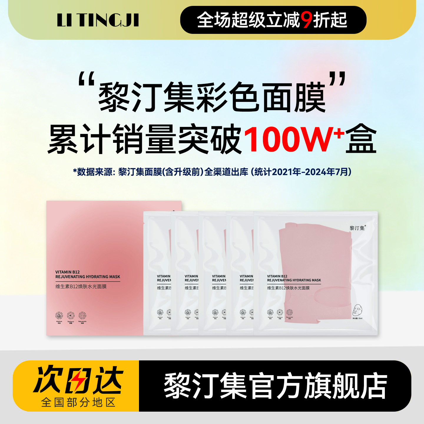 黎汀集面膜补水保湿抗皱彩色黎订集粉红黄蓝绿紫多色面膜官方正品