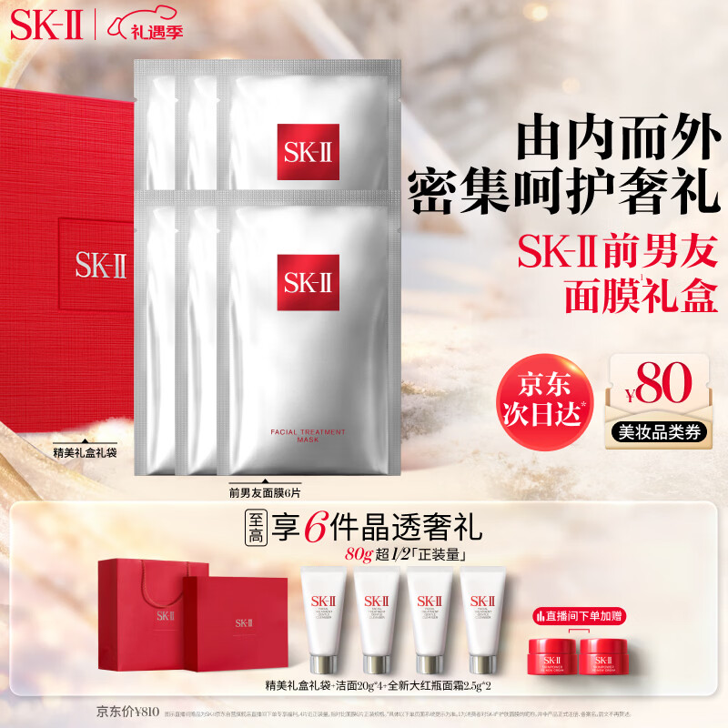 SK-II前男友面膜6片sk2补水抗皱紧致化妆护肤品套装礼盒生日圣诞礼物女
