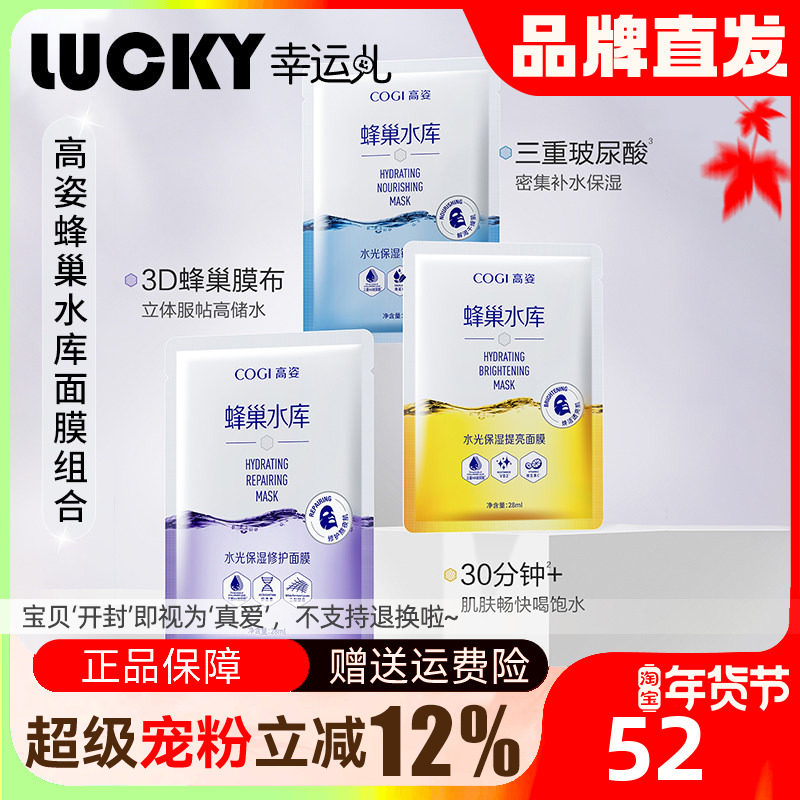正品高姿面膜蜂巢水库面膜保湿提亮肤色玻尿修护熬夜敏感肌肤平价