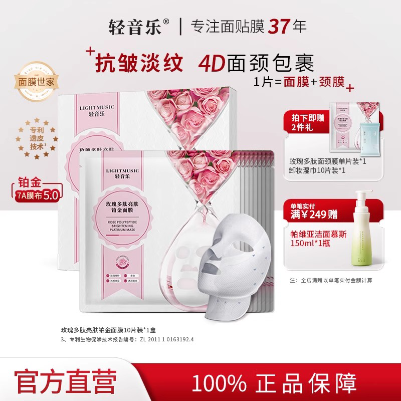 轻音乐玫瑰花水多肽面颈膜提亮抗皱补水淡化颈纹面膜官方旗舰正品