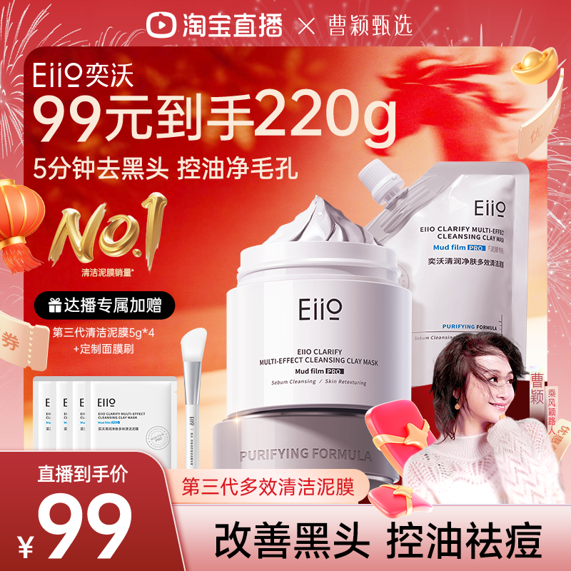 【曹颖直播间】eiio清洁泥膜去黑白头深层清洁毛孔白泥涂抹面膜