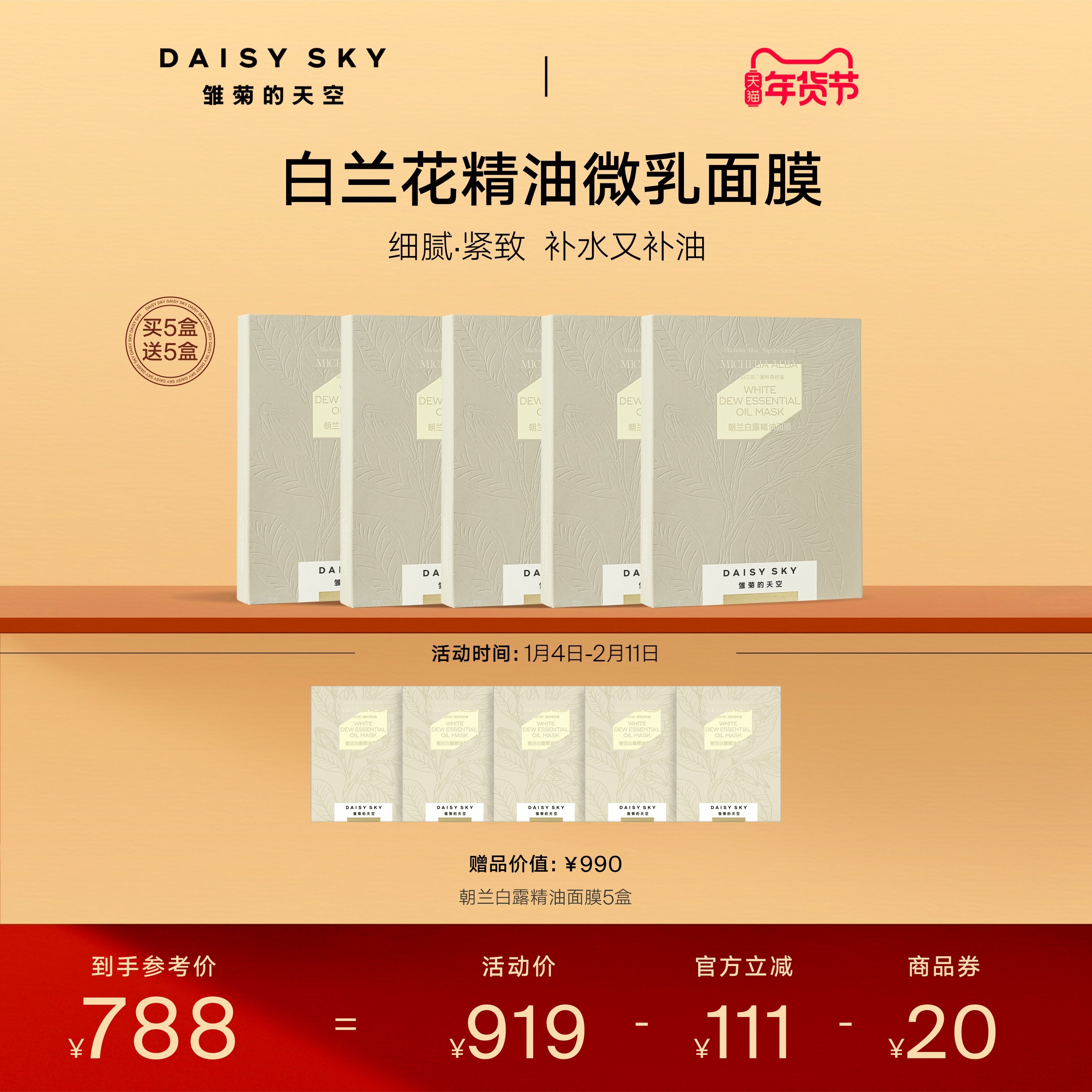 [立即抢购]雏菊的天空朝兰白露精油面膜补水买5盒送5盒 到手1