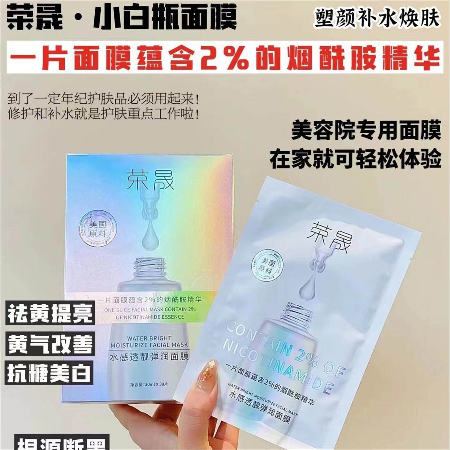 荣晟小白瓶面膜30片补水保湿焕肤小灯泡精华烟酰胺熬夜修复提亮