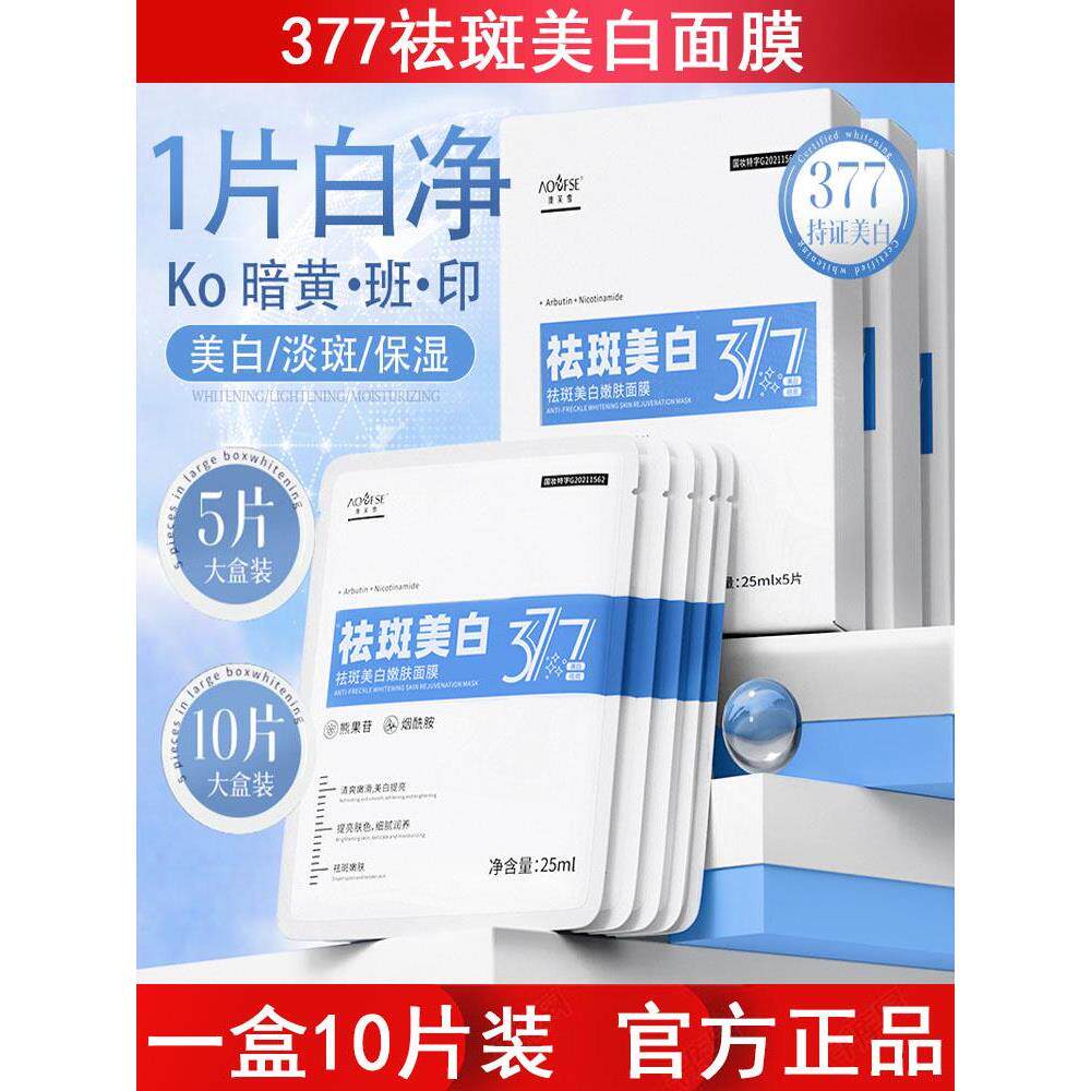 377美白面膜10片盒装熊果苷烟酰胺淡斑保湿贴